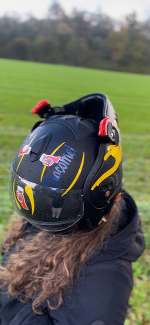 Before applying the stickers, carefully clean and degrease the helmet, and ensure the surface is completely dry. Detailed application instructions are available on our website via the menu or further down this page. After purchase, you will automatically receive a guide that clearly explains each step.