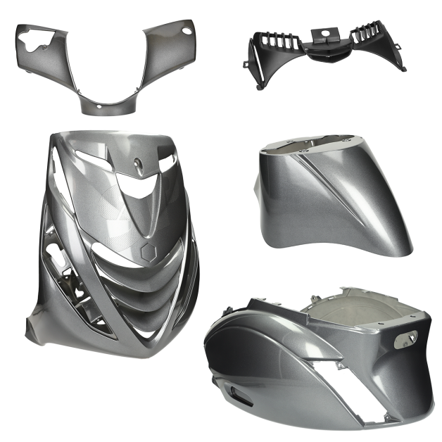 Deze 5-delige kappenset is speciaal ontworpen voor de Piaggio Zip 2000, Zip SP en Zip 4T. De set bestaat uit een stuurkap, voorkap met SP-grill, spatbord, achterkap en zijschermen, allemaal uitgevoerd in een hoogglans afwerking voor een luxe, strakke uitstraling.